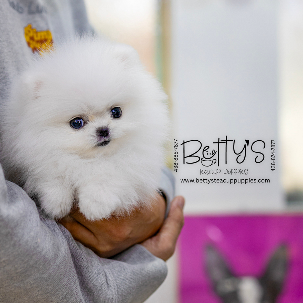 Description: Meet our beautiful female pom "Snowy " — She is available now @bettysteacuppuppies.